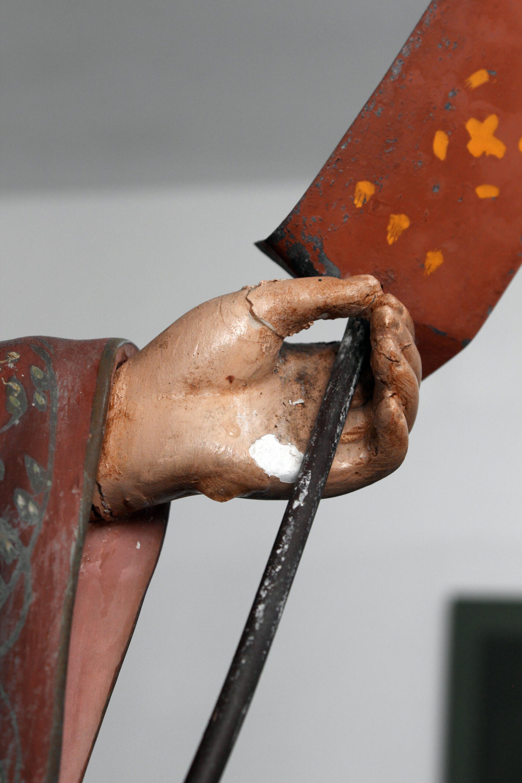 degradação através da oxidação do elemento metálico que acompanha a figura do São João Batista.