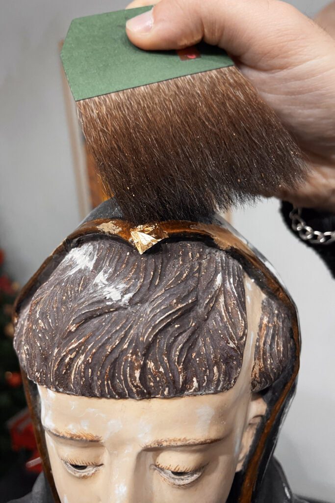 Nesta escultura de madeira do século XIX foi realizada uma intervenção de conservação e restauro em oficina. As patologias a destacar são os dois repintes que a imagem sofreu, que alteraram por completo o valor cromático, artístico e histórico. A folha de ouro fina, ainda original, apresentava um estado avançado de degradação e, como tal, não foi possível de recuperar na sua totalidade. De ressalvar nesta intervenção são a remoção do repinte, desvendando assim a camada cromática original que apresentava um excelente estado de conservação.