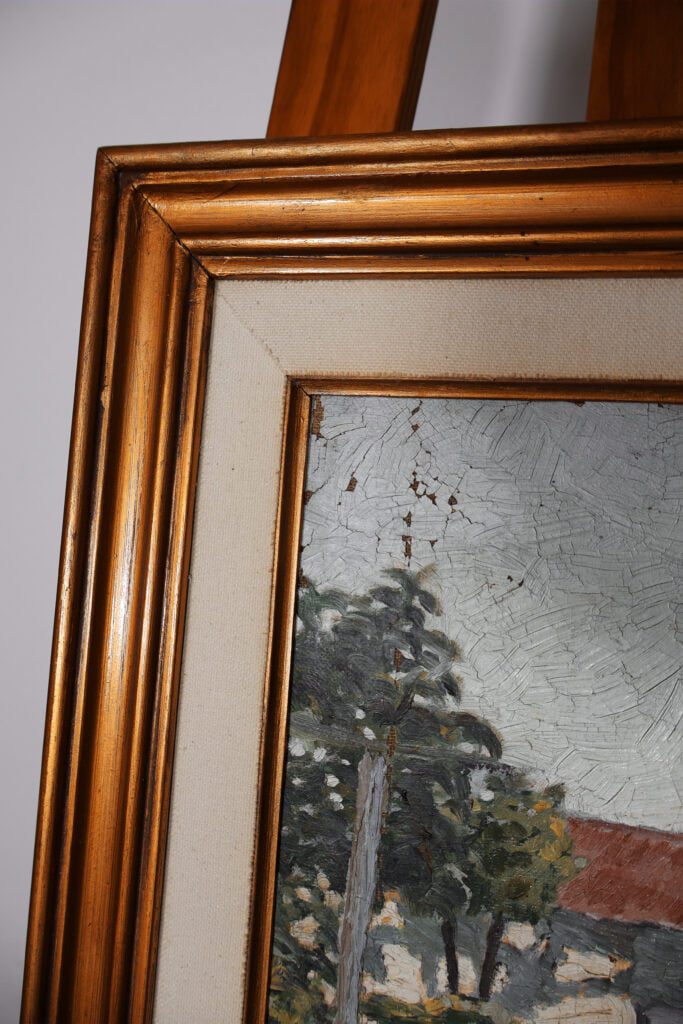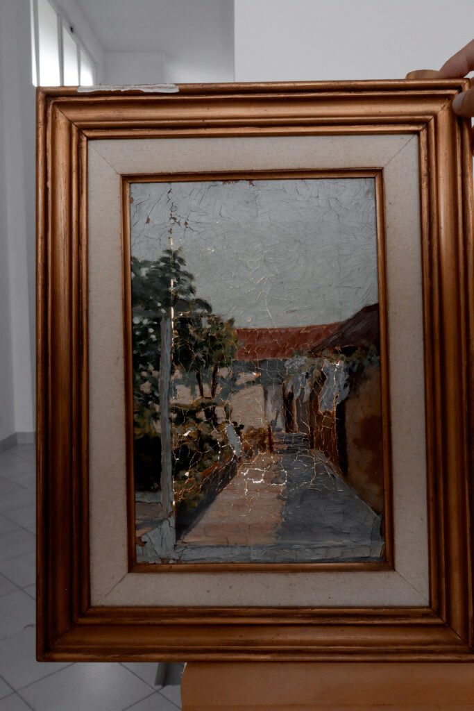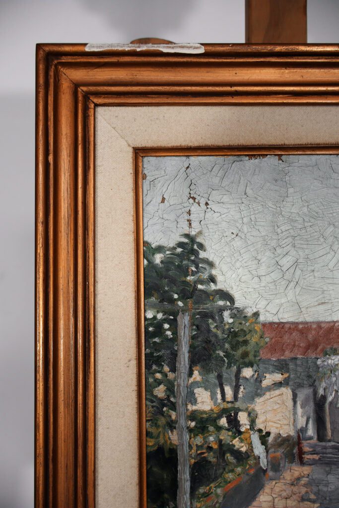 Esta pintura a óleo sobre tela, datada no início do século XX, sofreu apenas uma intervenção de conservação. Este tipo de intervenção deteve-se apenas na interrupção dos processos de degradação. Desta forma foi realizada uma reentelagem devido à perda de tensão que a tela original apresentava. Devido aos espatulados que a camada cromática apresenta foi necessário recorrer a uma mesa de baixa pressão de forma a realizar a planificação e a colagem necessária. Foi também necessária a aplicação de alguns excertos de tecidos em áreas que se apresentavam com lacunas e bastante fragilizadas.