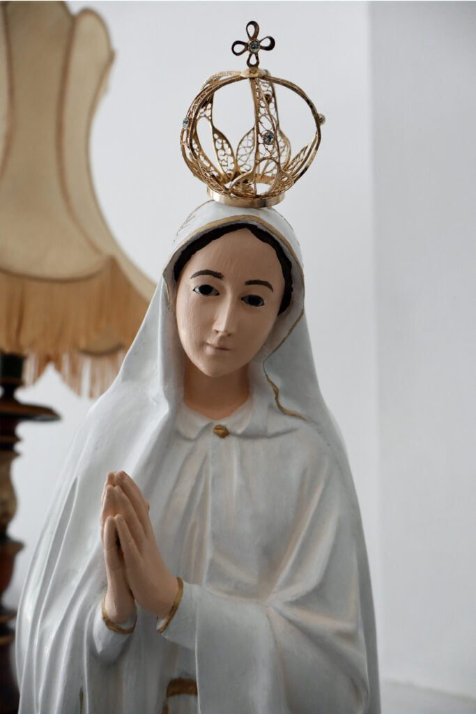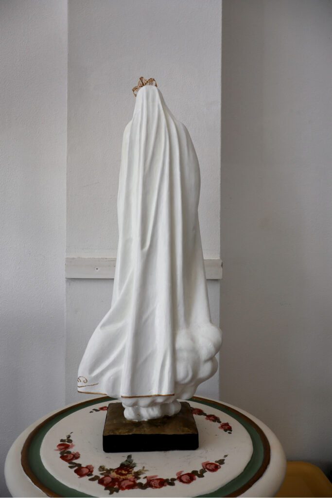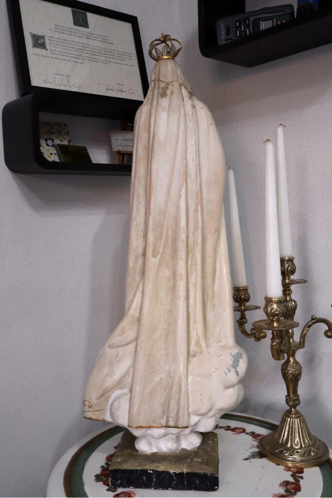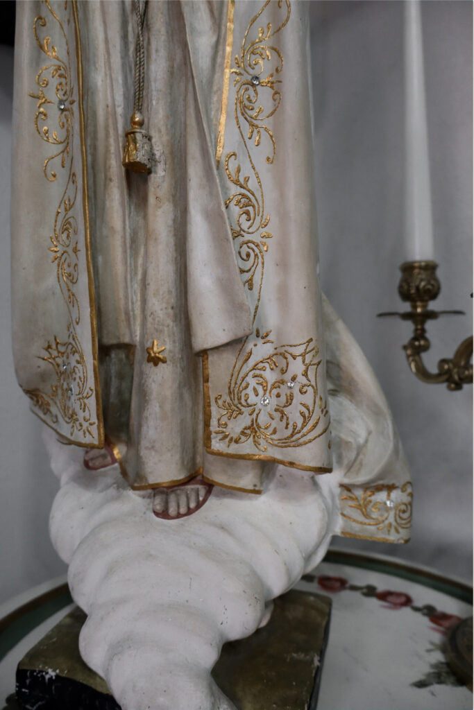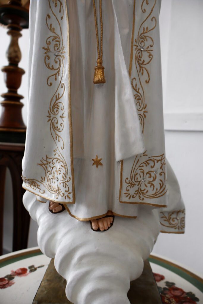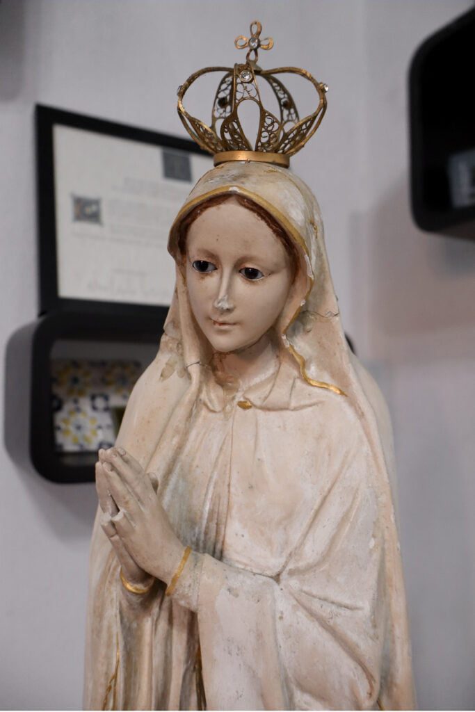 Esta imagem da Nossa Senhora de Fátima sofreu uma intervenção de conservação e restauro. Esta escultura apresentava alguns dedos em falta assim como o desprendimento de um dos olhos. Também apresentava muita sujidade superficial e abrasões, um pouco por toda a superfície. Desta forma os dedos foram reconstituídos, no olho foi aplicado um adesivo e toda a imagem sofreu uma limpeza química, incluindo a coroa, entre outras fases de tratamento subsequentes.