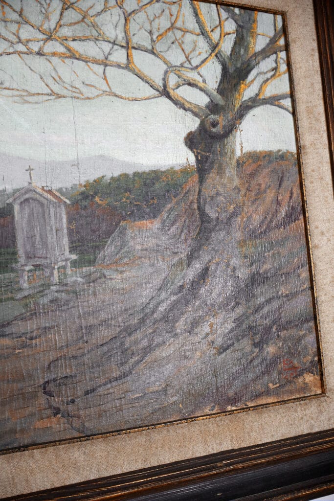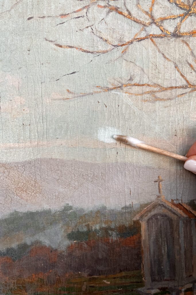 Esta pintura sobre contraplacado sofreu uma intervenção de conservação e restauro. Uma das partes mais relevantes desta intervenção foi a remoção do verniz amarelecido assim como das reintegrações cromáticas através da técnica de tratteggio. A moldura também foi intervencionada que apresentava faces de estopa.