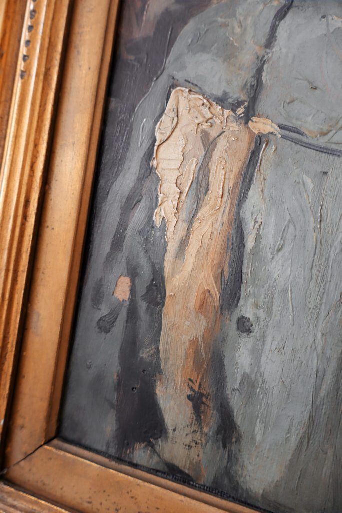 Esta pintura a óleo sofreu uma intervenção de conservação e restauro. Apesar de a mesma ter sido realizada sobre um cartão, este suporte estava fixo sobre uma tela. Uma das patologias era a falta de união destes dois suportes, ou seja, foi-lhes devolvida a coesão através da injeção de um adesivo acrílico. Toda a camada cromática apresentava um revestimento final já bastante amarelecido que, através de uma limpeza química, foi removido. A placa metálica com a inscrição do nome do artista na parte inferior da moldura apresentava-se oxidada. Desta forma, foi removida a corrosão através de métodos abrasivos.